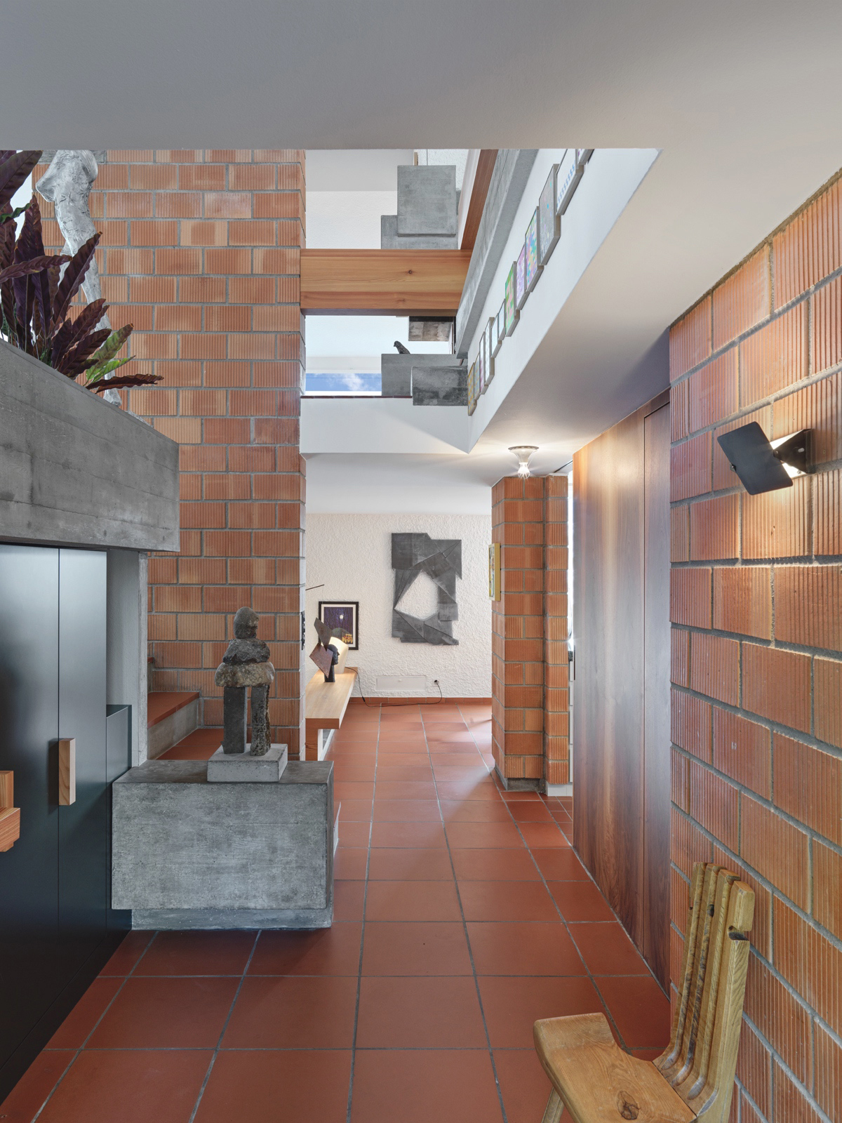 Zwischen 1963 und 1965 errichtete Hans Demarmelsan an steiler Hanglage in Zürich-Höngg ein Ensemble aus drei skulpturalen Bauten in rauem Sichtbeton. Auch das Innenleben der Häuser ist plastisch durchgebildet. Die Wohnräume entwickeln sich über mehrere halbgeschossig versetzte Ebenen, die ein offenes Raumgefüge bilden. Charakteristisch ist innen wie aussen die Verwendung von roh belassenen natürlichen Materialien wie Sichtbeton, Backstein, roten Klinkerplatten, Nussbaumholz und grobem Putz. Das „Haus C“ beinhaltet zwei Wohnungen, von denen die obere nach einem Besitzerwechsel komplett instandgesetzt wurde. Dabei wurden neben der Behandlung der Oberflächen die Bäder und Küche erneuert sowie verschiedene Fenster ersetzt bzw. restauriert. Zudem wurde der Grundriss in den Originalzustand zurückgeführt, mit kleinem Gäste-WC und einem Zimmer beim Eingang.
