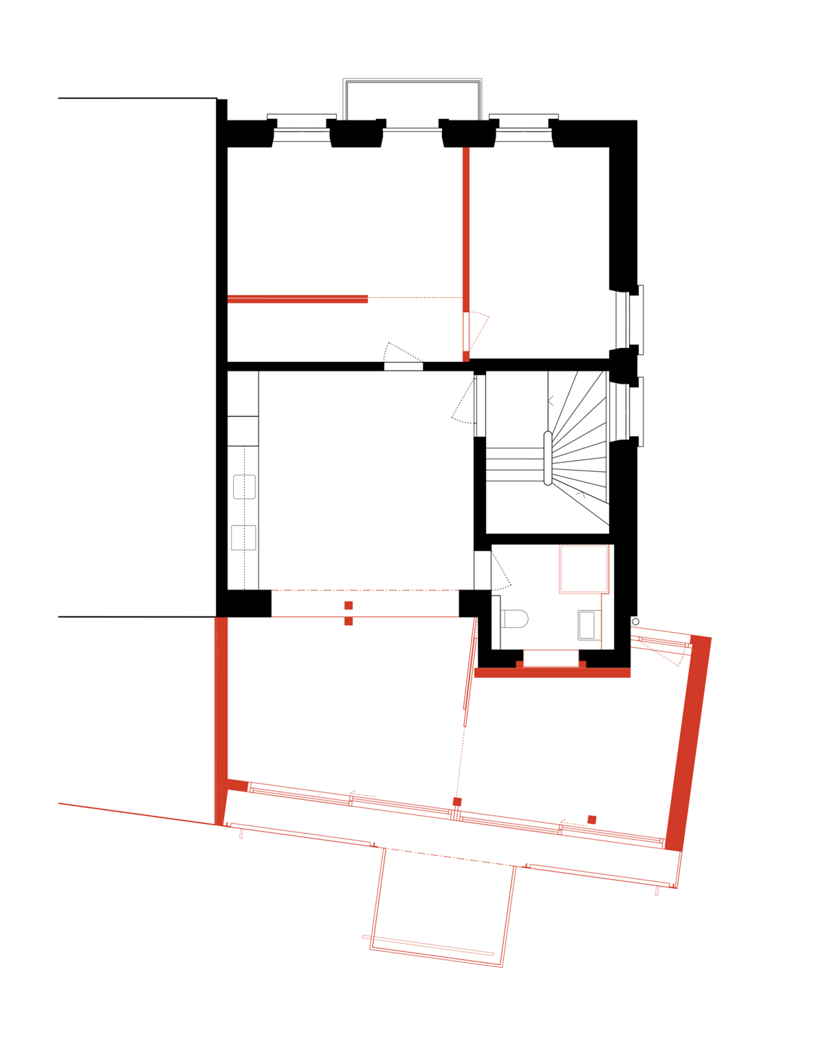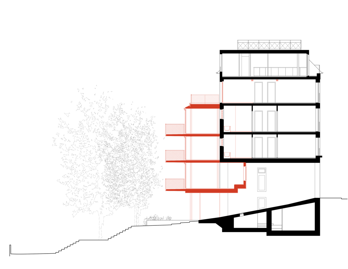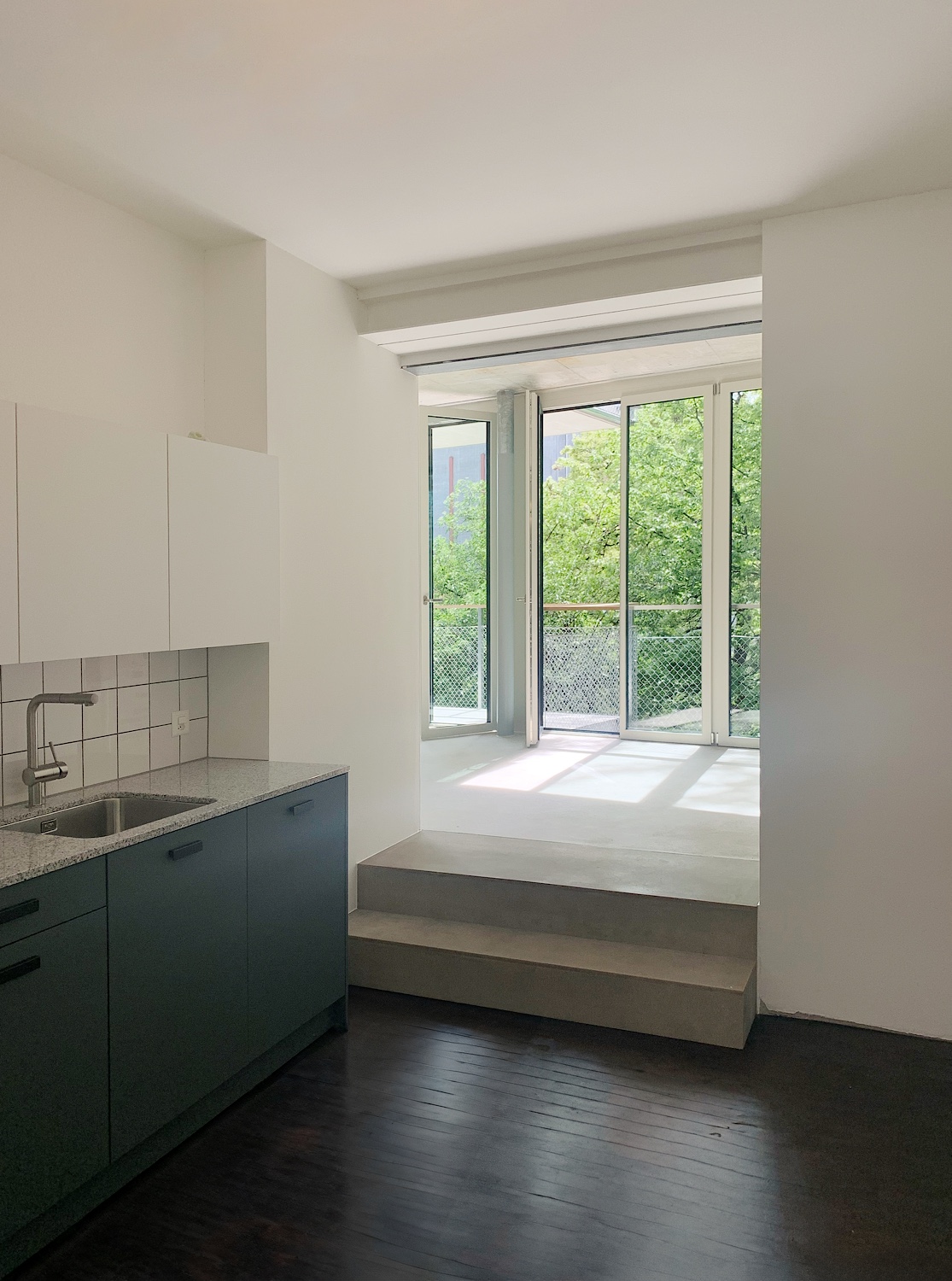 Der An- und Umbau des Hauses an der Hönggerstrasse 7 ist ein Beitrag zur nachhaltigen innerstädtischen Verdichtung und ein Beispiel für konsequenten Bestandserhalt. Wenige kostengünstige Massnahmen schaffen dabei ein Maximum an neuem Wohnraum. Die Eingriffe in den Bestand sind minimal. Die statische Struktur bleibt erhalten, die Raumdisposition weitgehend unverändert. Konsequenterweise ist der Anbau als statisch unabhängiger Platten-Stützen-Bau konzipiert, der an den Bestand andockt, ohne diesen strukturell zu beanspruchen. Diese Strategien tragen nicht nur zu einer markanten Reduktion grauer Energie bei, sie schaffen auch eine charakteristische Wohnarchitektur, die aus der Dialektik von Alt und Neu ihren besonderen Reiz bezieht.