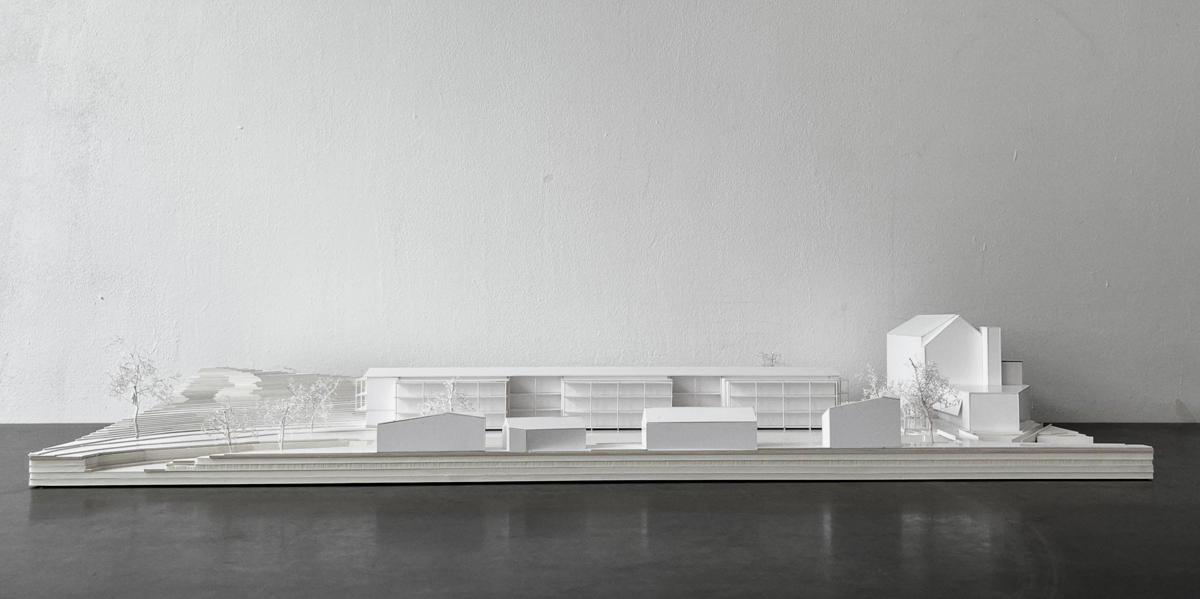 Das Schulareal von Sachseln liegt an zentraler Lage im Dorf, eingebettet in weites, zum See hin abfallendes Wiesland. Der Neubau mit Klassenzimmern, Spezialräumen für die Primarstufe und fünf Kindergärten wird als ein klares, langgestrecktes Volumen quer zum Hang vorgeschlagen, welches durch seine präzise Setzung von einer allseitigen Orientierung profitiert und gleichzeitig neue Freiräume definiert.