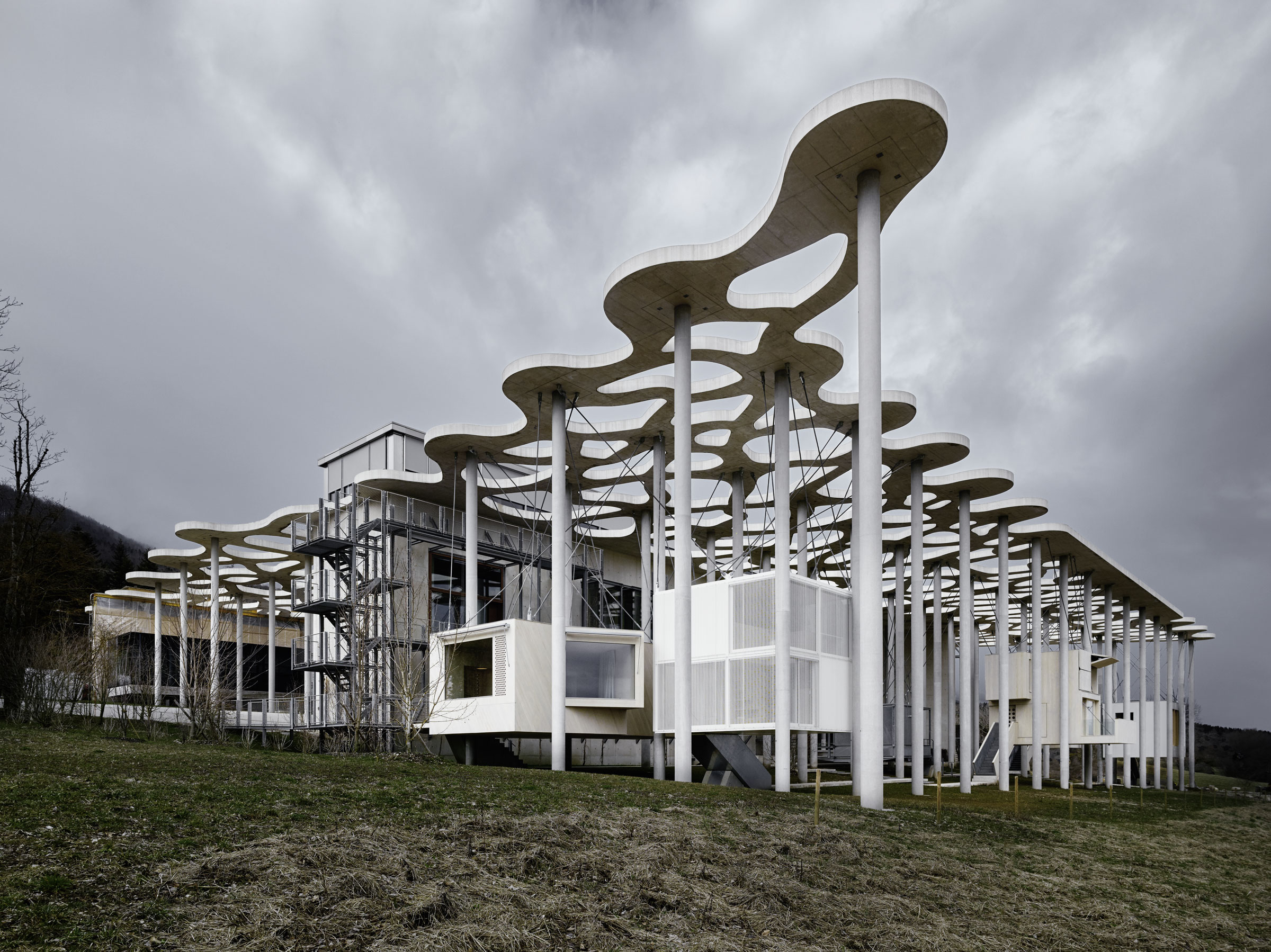Die Fondation Jan Michalski pour l‘Ecriture et la Littérature beherbergt neben einer Bibliothek, einem Auditorium und Ausstellungsräumen acht individuelle Wohneinheiten, so genannte Cabanes, welche Schriftstellerinnen und Schriftstellern aus der ganzen Welt für einen temporären Aufenhalt zur Verfügung stehen. Diese Cabanes, ein jedes von einem anderen internationalen Architekturbüro entworfen, sind an einem weit in die Landschaft greifenden perforierten Dach aufgehängt. Unser Cabane bietet einen grosszügigen Raum zum Leben und Arbeiten. Schreibplatz, Wohn- und Schlafbereich gehen wie in einem Atelierraum fliessend ineinander über. Die grossen Fenster falten sich wie Flügel aus der einfachen Grundform des Volumens und öffnen den Blick in die Weite der Landschaft.