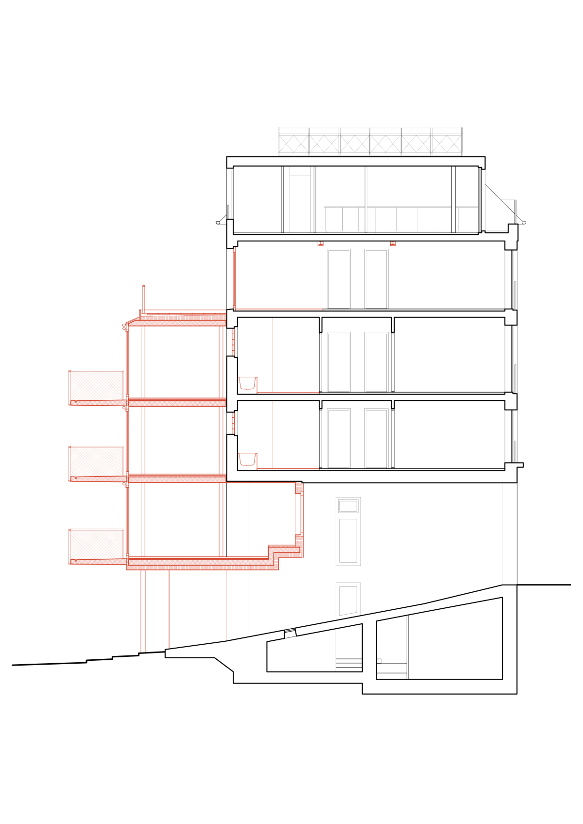 Der An- und Umbau des Hauses an der Hönggerstrasse 7 ist ein Beitrag zur nachhaltigen innerstädtischen Verdichtung und ein Beispiel für konsequenten Bestandserhalt. Wenige kostengünstige Massnahmen schaffen dabei ein Maximum an neuem Wohnraum. Die Eingriffe in den Bestand sind minimal. Die statische Struktur bleibt erhalten, die Raumdisposition weitgehend unverändert. Konsequenterweise ist der Anbau als statisch unabhängiger Platten-Stützen-Bau konzipiert, der an den Bestand andockt, ohne diesen strukturell zu beanspruchen. Diese Strategien tragen nicht nur zu einer markanten Reduktion grauer Energie bei, sie schaffen auch eine charakteristische Wohnarchitektur, die aus der Dialektik von Alt und Neu ihren besonderen Reiz bezieht.